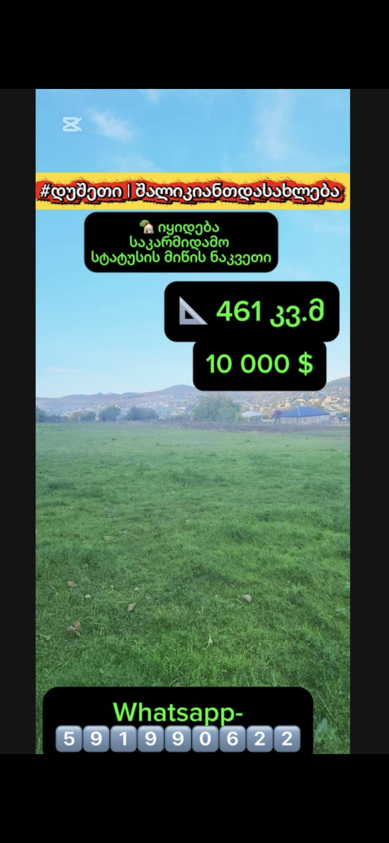 🎯 Amazing opportunity in Kvareli! 🎯 ✨ 10 hectares of unique land for sale in Akhalsopeli, near Anapea village and Chateau Bruale! 🌳 Adjacent to the forest and the Afen River – fresh air, beautiful views and complete harmony with nature! 💎 Price only 1.5$ / 1 sq.m! 🏡 Ideal for a villa complex, agrotourism and resort houses! 🌄 Close to the Mtisdziri resort, which further increases its investment value! 📌 Great prospects for income - dividing the land into small plots and selling it with high profit For details, write to me on WhatsApp 591990622 #Kvareli #Akhalsofeli #Land #Investment #Villas #FamilyEco #Tourism #Kakheti #RealEstate #Sale #YourPlace
